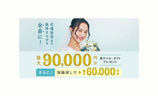 さらに指輪の購入特典として追加で60,000円分の商品券をもらえるので、最大で153,000円分もGETすることができます。