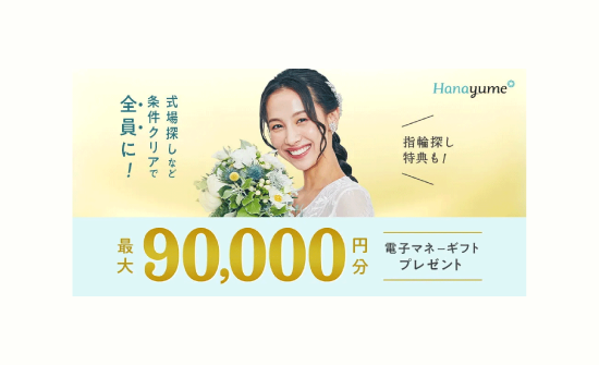 - キャンペーンに参加すると最大93,000円分の電子マネーギフト券がもらえるハナユメ