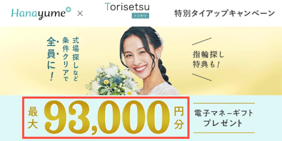 ハナユメ | 最大93,000円分の電子マネーギフト券 |