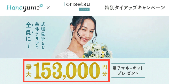ハナユメを利用すると153,000円分の商品券がもらえる
