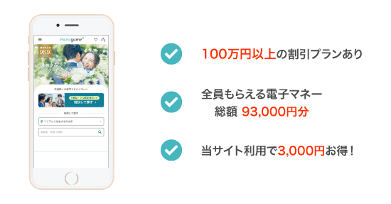 「結婚式の割引」+「全員もらえる93,000円」はハナユメだけ!